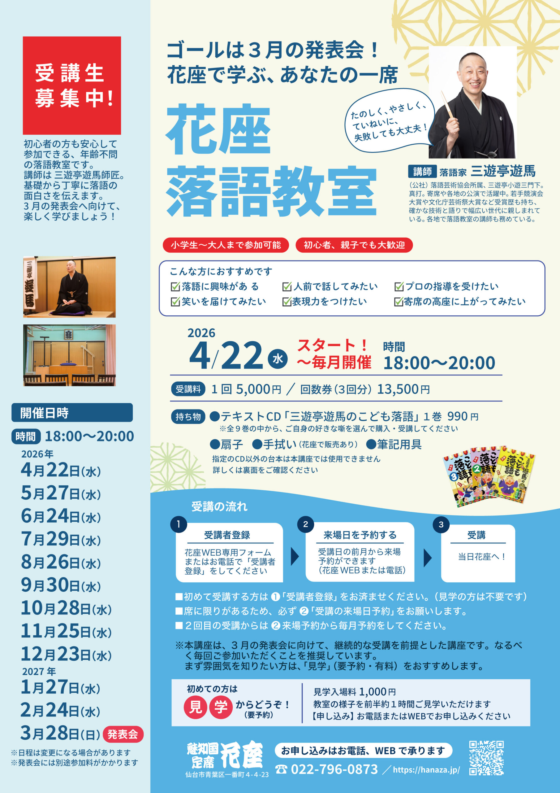 2026年4月より開講|「花座落語教室」受講生募集のお知らせ