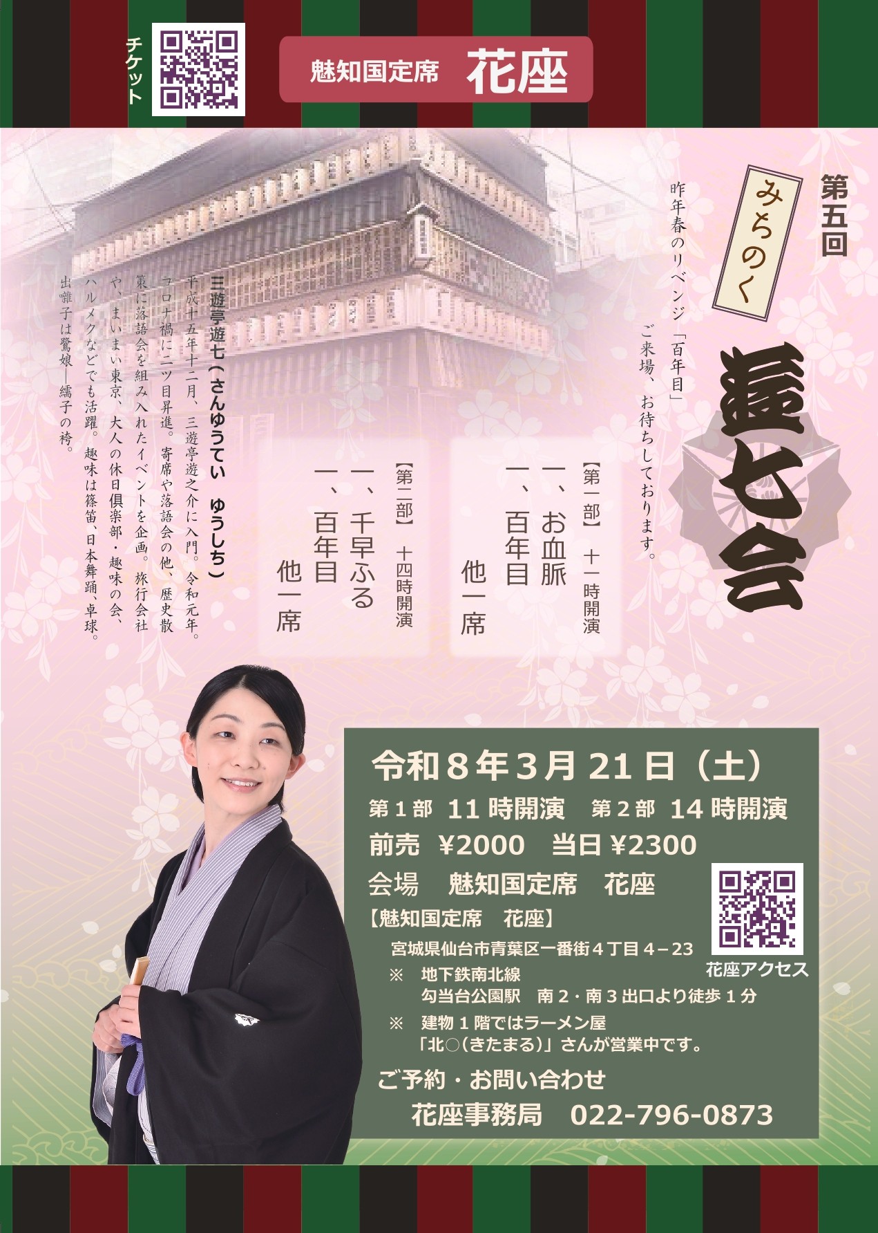 - 14:00 公演:「千早ふる」「百年目」他一席